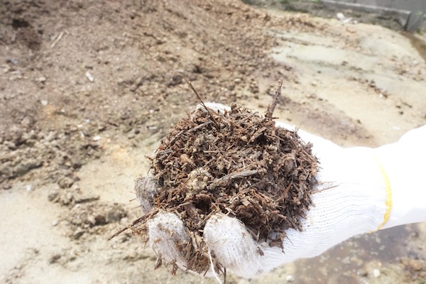 その竹をチップにし、休耕田の土と混ぜて作った土。