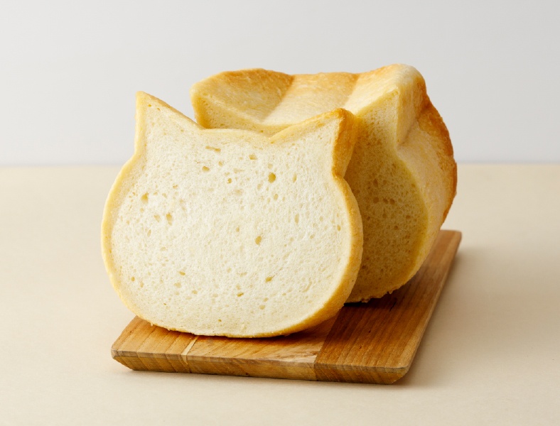 「ねこ食パン」550円は<県産小麦はるみずき>と<さぬきの夢>をブレンドし、猫型で焼き上げたもの。見た目のかわいさでも人気です。また同じ生地を使い、しっとり柔らかでいて、食べ応えのある食感に仕上げた「はる食パン」500円も販売します。