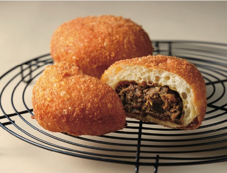 「オリーブ牛カレーパン」450円は<香川県産小麦はるみずき>を使用したもっちりとした生地に10種類の香辛料とオリジナルビーフブイヨンでじっくり煮込んだ<オリーブ牛>を包んだ自慢の1品です。