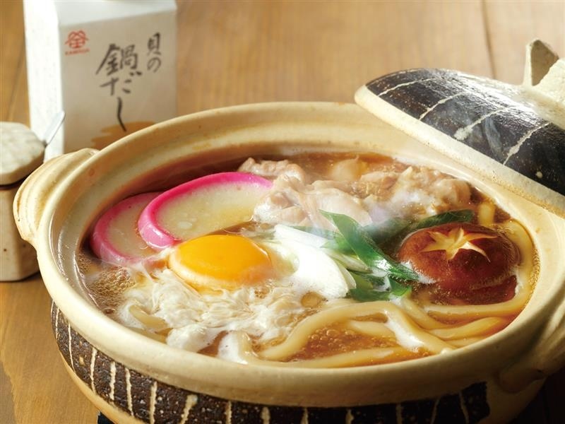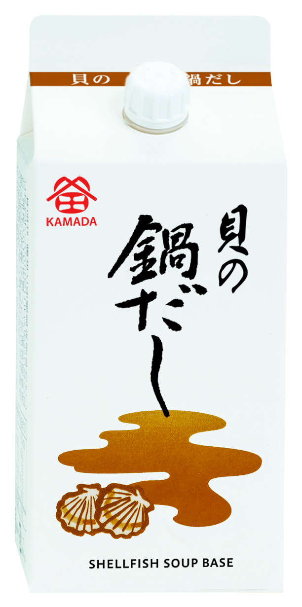 醤油とだしにホタテ・シジミの旨みを加え、風味とコクにこだわった鍋つゆです。9月から3月までの季節限定商品です。