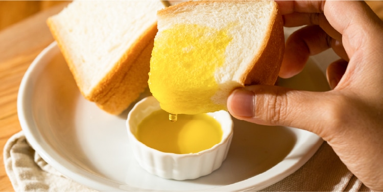小豆島で4代続くオリーブ農家の「井上誠耕園」は、オリーブオイルをおいしく味わうために開発した生食パン2.6斤1,430円、1.3斤750円を販売。耳までもっちりやわらかで、小麦の風味とミルクの甘みが広がります。