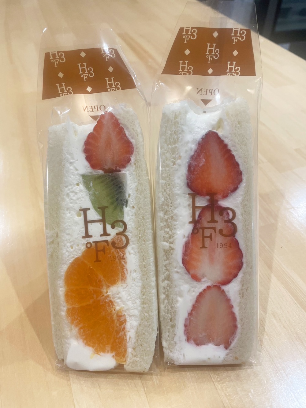 フルーツサンドはいちごとフルーツミックス(さぬきひめ><香緑><小原紅早生>)の2種類各700円。純正生クリームにマスカルポーネを使用した濃厚クリームに、県産<さぬきひめ>と<小原紅早生>のみかんがバッチリの相性です。