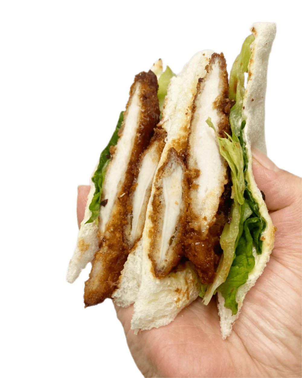 チキンカツサンドは県産の<鶏肉>をチキンカツにして、オリジナルソースに漬け込んだもの。他に照り焼きチキンサンドも予定。各400円。