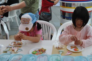 お子様にとっての楽しみももちろんありました。今回初出店のnaja’s dozyのパティシエ井上さんによるアイシングクッキーのワークショップ。クッキーに砂糖で絵付けをするこのワークショップ、やっぱり女の子に大人気でした。みんな熱心に、そして楽しそうに作っていましたよ。今後も色んなワークショップをやっていきますので、お楽しみに!