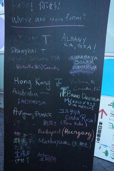 今日はいつものどこから来たか書いて頂く掲示板に英語版も設営してみました。