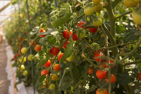 1店舗目は竹で作ったビニールハウスでトマトを育てている