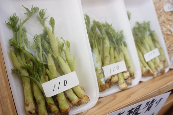 アグリカルチャーカンパニー森近さんブースでは春を感じるウドの芽も。天ぷらなどにして召し上がれ。