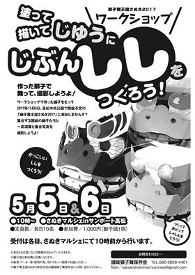 自分だけの獅子舞を作って一斉演舞と一緒に写真撮影しよ~! 定員は各日10名で、参加費は獅子舞1個で1,000円。