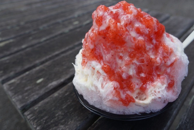 <さぬきひめ>のシロップがたっぷり「苺みるくかき氷600円」が登場。