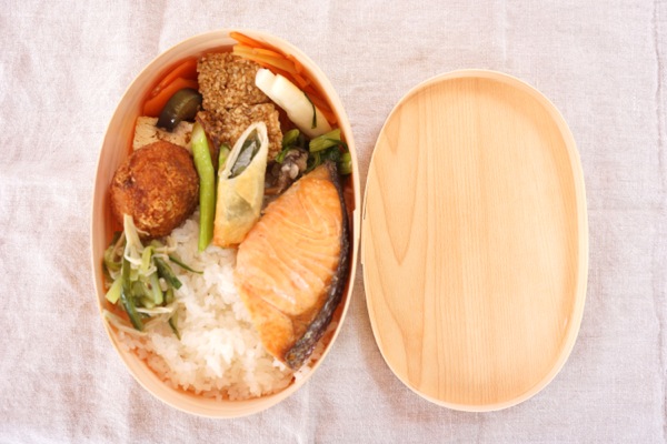 畔屋さんの新米アゼヤはぜ掛け米を使用した、わっぱ弁当。新米も販売しています。