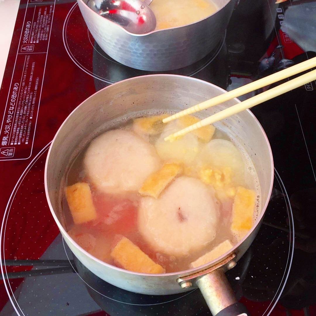 「あんもち雑煮」作りのワークショップも。いりこと白味噌仕立ての味噌汁に大根や人参、そして餡いりの丸餅を入れた、香川県の郷土料理。