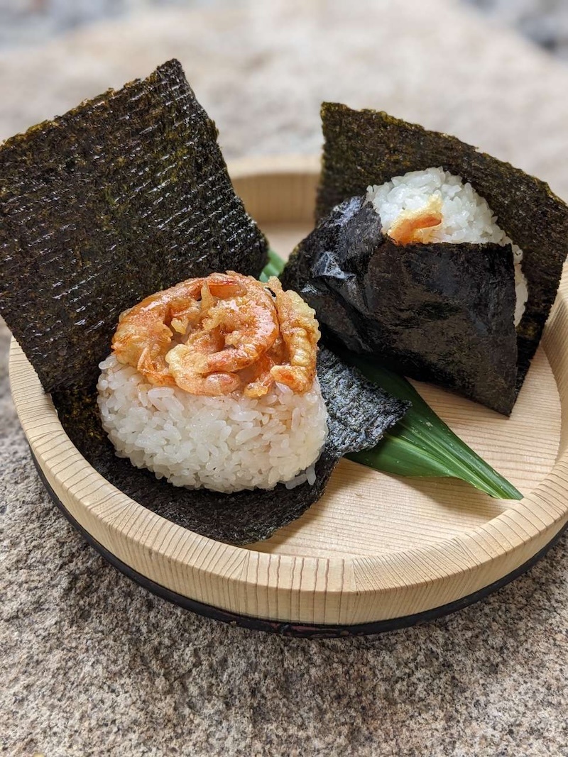 香川県で採れた地えびを使って大人も子どもも好きな天むすにしました。