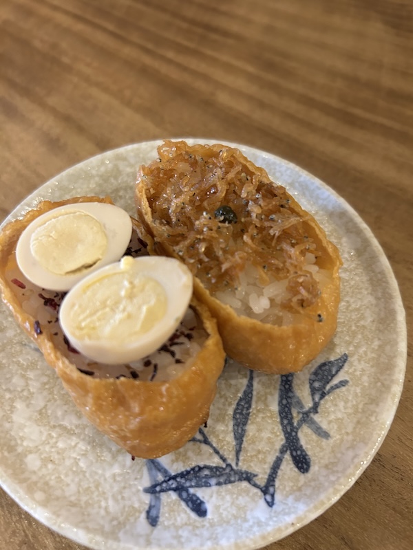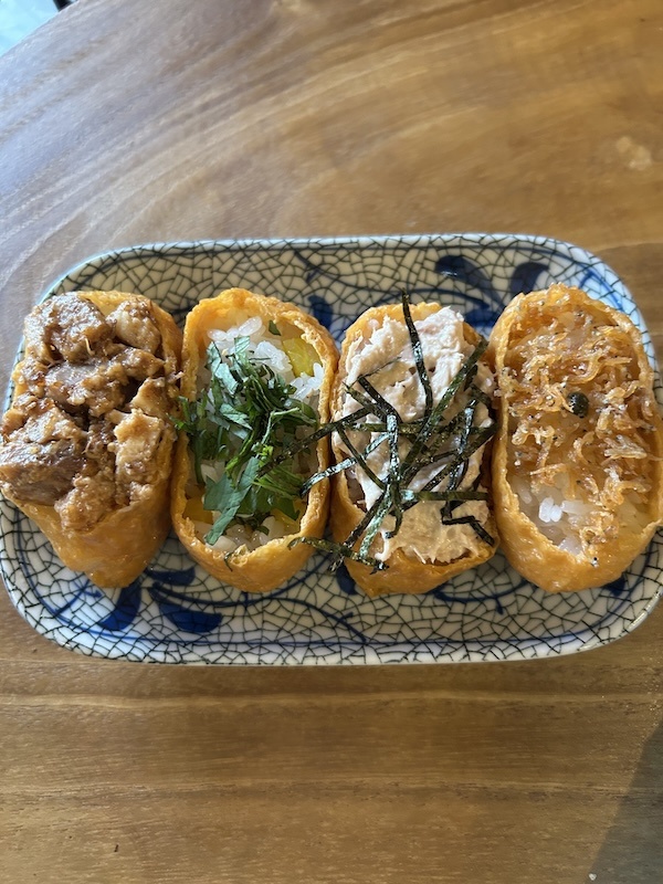 高松仏生山にある神崎屋さんの寿司酢と吉田養蜂場さんの<蜂蜜>を使ったいなり寿司に、色々な種類の具材をトッピングしています。角煮やシーチキン、ちりめん山椒、味玉うずらなど、具材の組み合わせを楽しんでください。