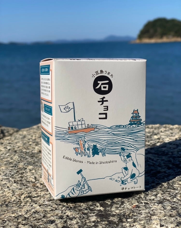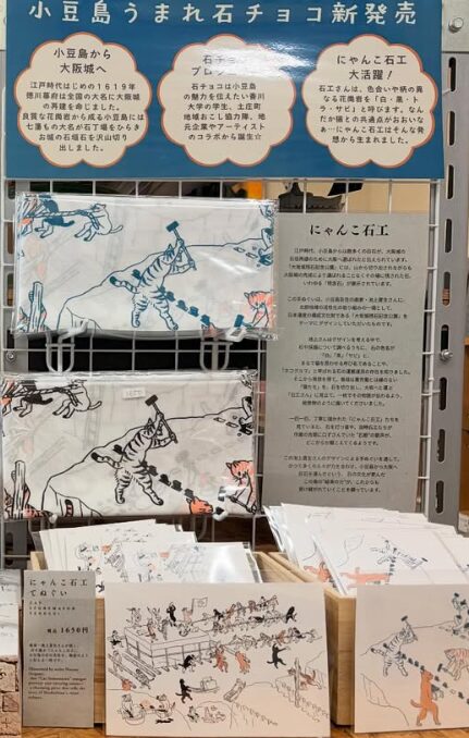 香川大学の学生と地域おこし協力隊が連携したお土産プロジェクトから。小豆島在住アーティストによって描かれた「にゃんこ石工(いしく)」が彩ります。