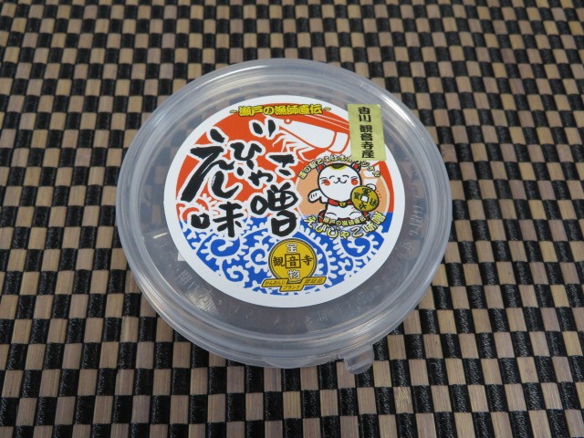 地元漁師町に伝わる製法を基に作られたお味噌です。燧灘(ひうちなだ)で獲れた新鮮な<小エビ>を、県産の<ごぼう><れんこん><干ししいたけ>の野菜と共に調理し、さらに無添加の<味噌>と砂糖を加え、コトコトと時間をかけて煮詰めました。