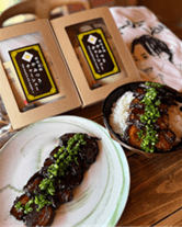 オリーブ豚を自家製塩麹でじっくりと発酵・熟成させて、うま味を逃がさず1本1本丁寧に焼き上げ、希少糖や醤油、ニンニク、オリーブオイルといった香川の食材を使用した醤油ダレでじっくり煮込んだチャーシュー。柔らかく、口の中でとろける香ばしい美味しさ。
