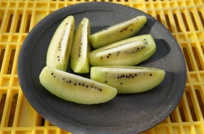 果肉色が黄緑色で、高級感あふれるエメラルドのように、気品あふれるキウイになってほしいとの願いを込めて、「さぬきエメラルド」と名付けられました。