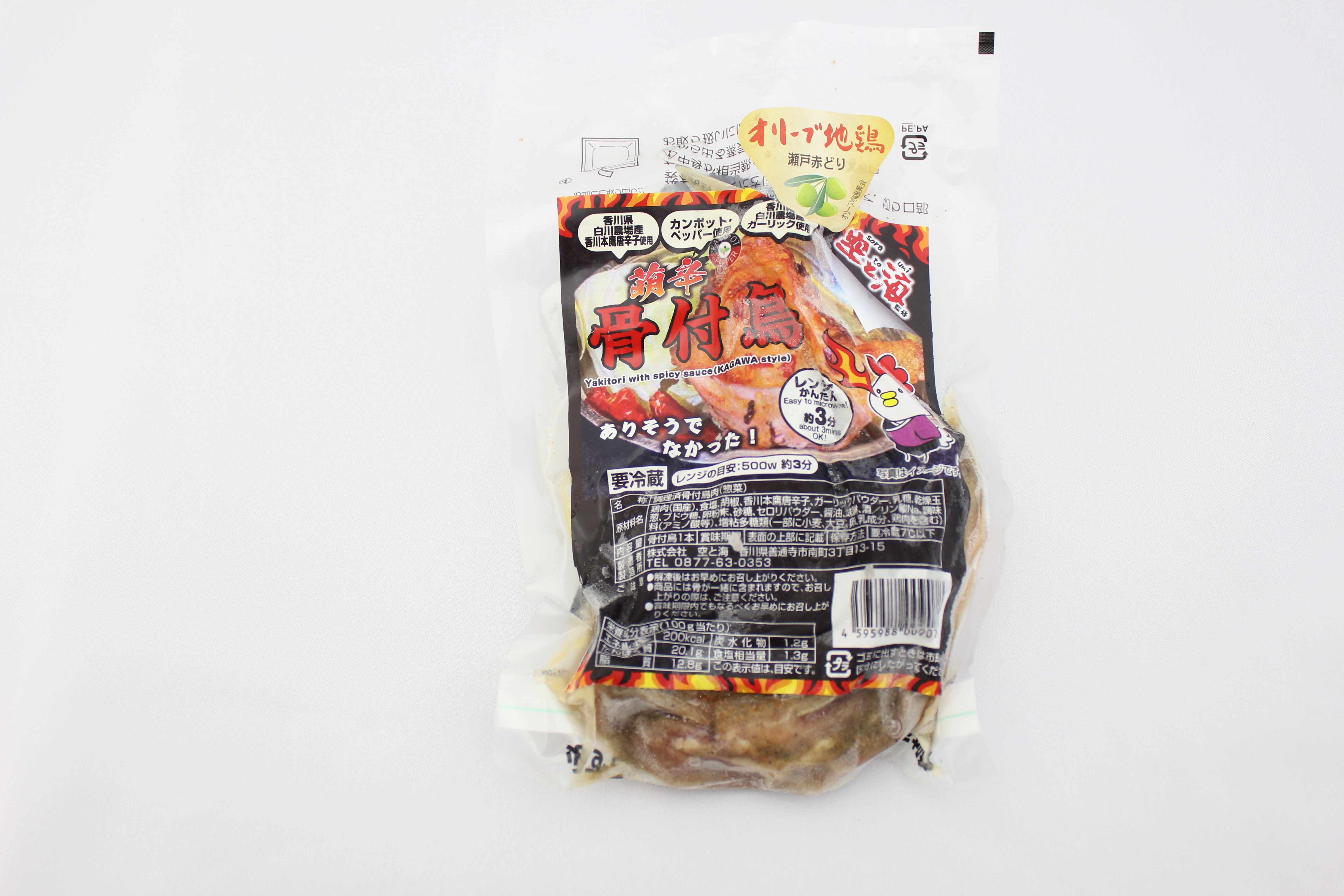 | 紹介文 | オリーブ地鶏の骨付もも肉を使用。香川本鷹唐辛子と香川県産ニンニクを使用しており、ピリ辛さとニンニクの香りで病みつきな一品。 |