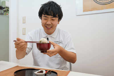 初めての味に梶さんも「香りがすごくいい。枝豆と白味噌が互いを引き立て合っていますね」と驚いていました。