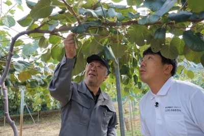 「これまでのキウイ栽培の経験を生かして、もっとおいしいキウイを作って、たくさんの方に食べてもらいたいです」と天雲さんが思いを語ってくれました。梶さんもこれからの発展を楽しみにしています。 -