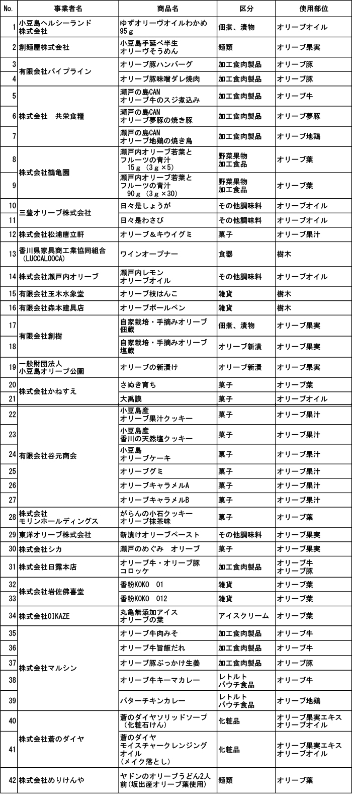 ■香川県産オリーブ関連商品の第2回認証商品一覧はこちらから