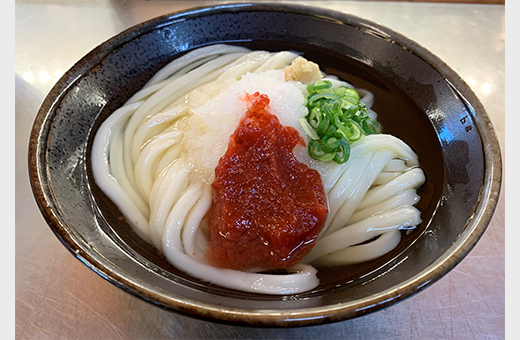 当店自慢のうどんと海老天・たこやきの味をお楽しみください