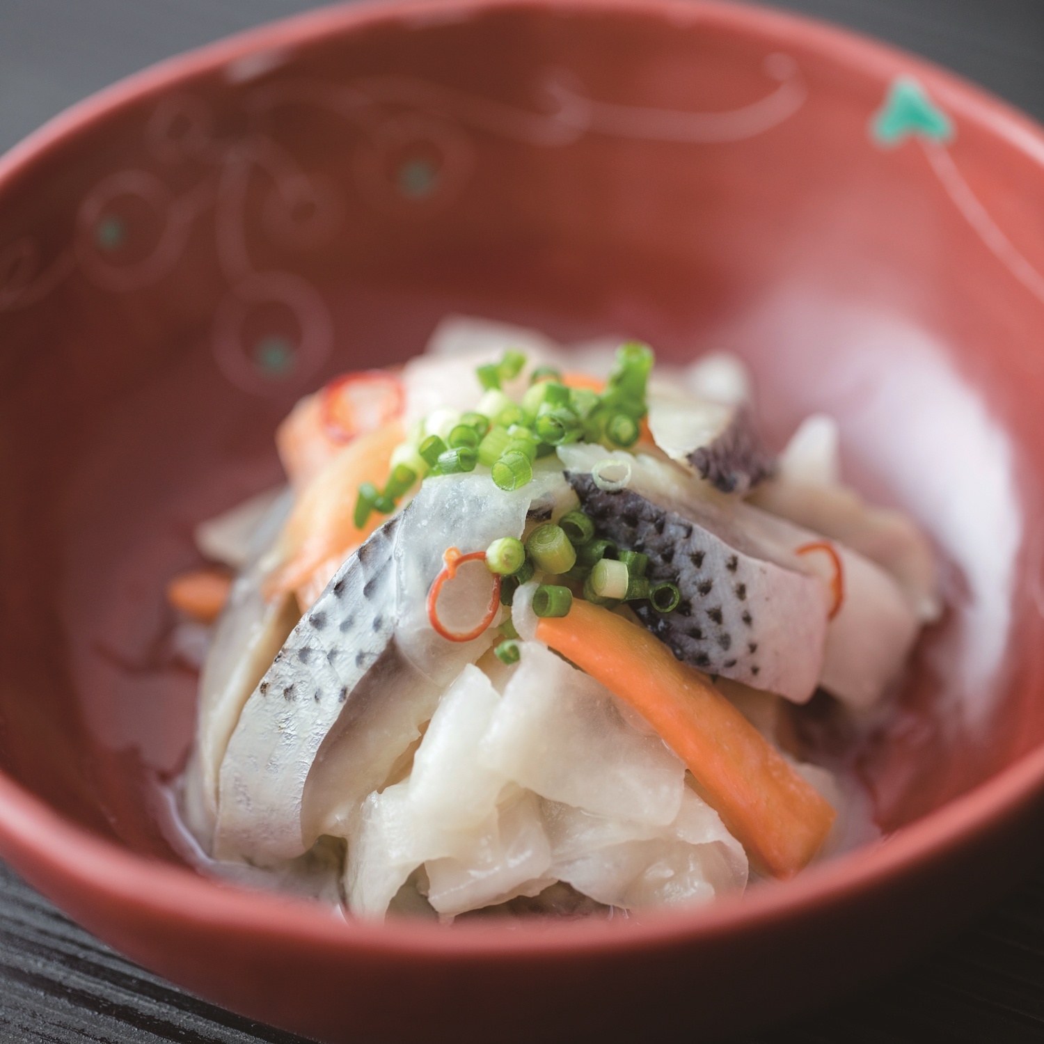 瀬戸内産鰆と蕉のスモーク 讃岐野菜のオリーブオイル掛け