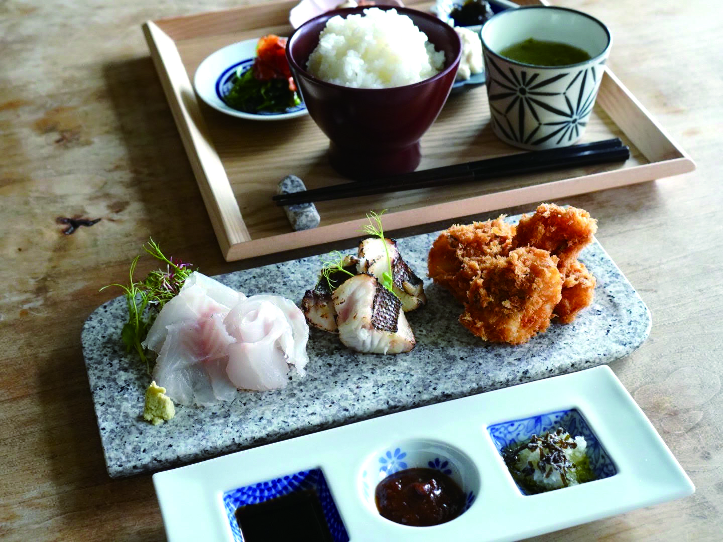 料理人が目利きした魚を使用。津本式“究極の血抜き”の公認技士が魚を仕立て、魚本来の旨味を引き出す。造り・炙り・揚げで提供し、食べ比べができる。
