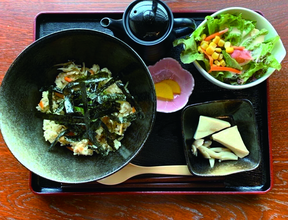 讃岐の郷土料理「いりこ飯」をオリジナルアレンジ!イリコ出汁をかければ、サラッとお茶漬け風に楽しめる。他に、直島産の海苔を使った丼物も提供中。