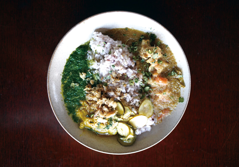 マダイからじっくりと出汁をとりココナッツで味を整えたカレー。マダイの風味とココナッツのまろやかさの中にスパイスの爽やかな刺激が楽しめる。