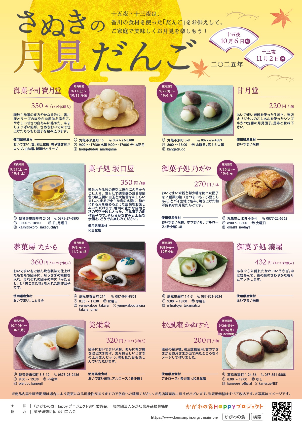 十五夜・十三夜は、香川の食材を使った「だんご」をお供えして、ご家庭でお月見を楽しもう!